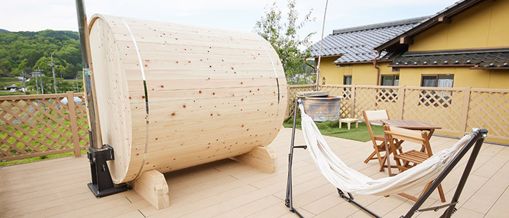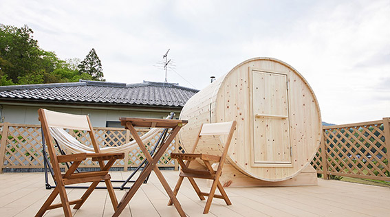 貸切空間なので、気兼ねなく思い思いのスタイルでご利用ください。キャンプ用品の貸出もご利用いただけます。またバレルサウナのプライベート利用など自然豊かな環境で気軽に本物のアウトドアに触れることができます。